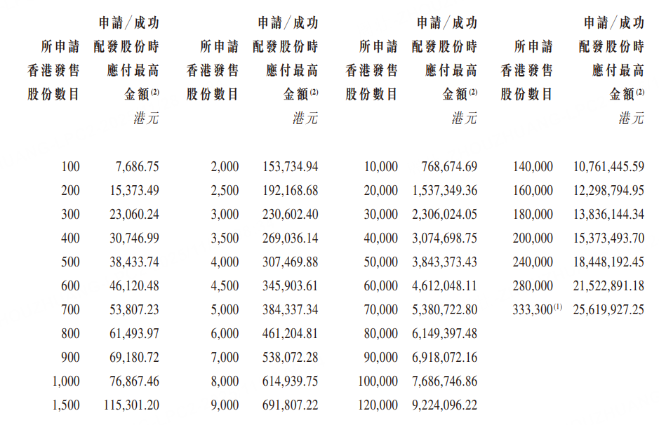 乙組門檻爲7萬股,申購所需資金約538.07萬港元。