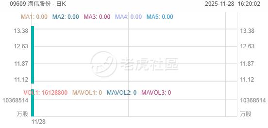 海偉股份上市首日收跌近23%,此前公開發售階段獲5426.27倍認購,一手中籤率1%。