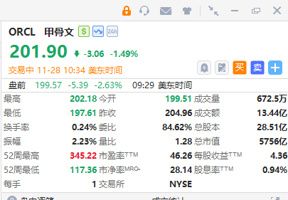 甲骨文跌約1.5%,計劃再貸380億美元投資AI基建。