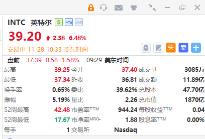 華盛資訊11月28日訊,美股明星科技股走勢分化!英特爾盤大漲超6%,有分析稱英特爾或成TPU行情背後“隱形贏家”;