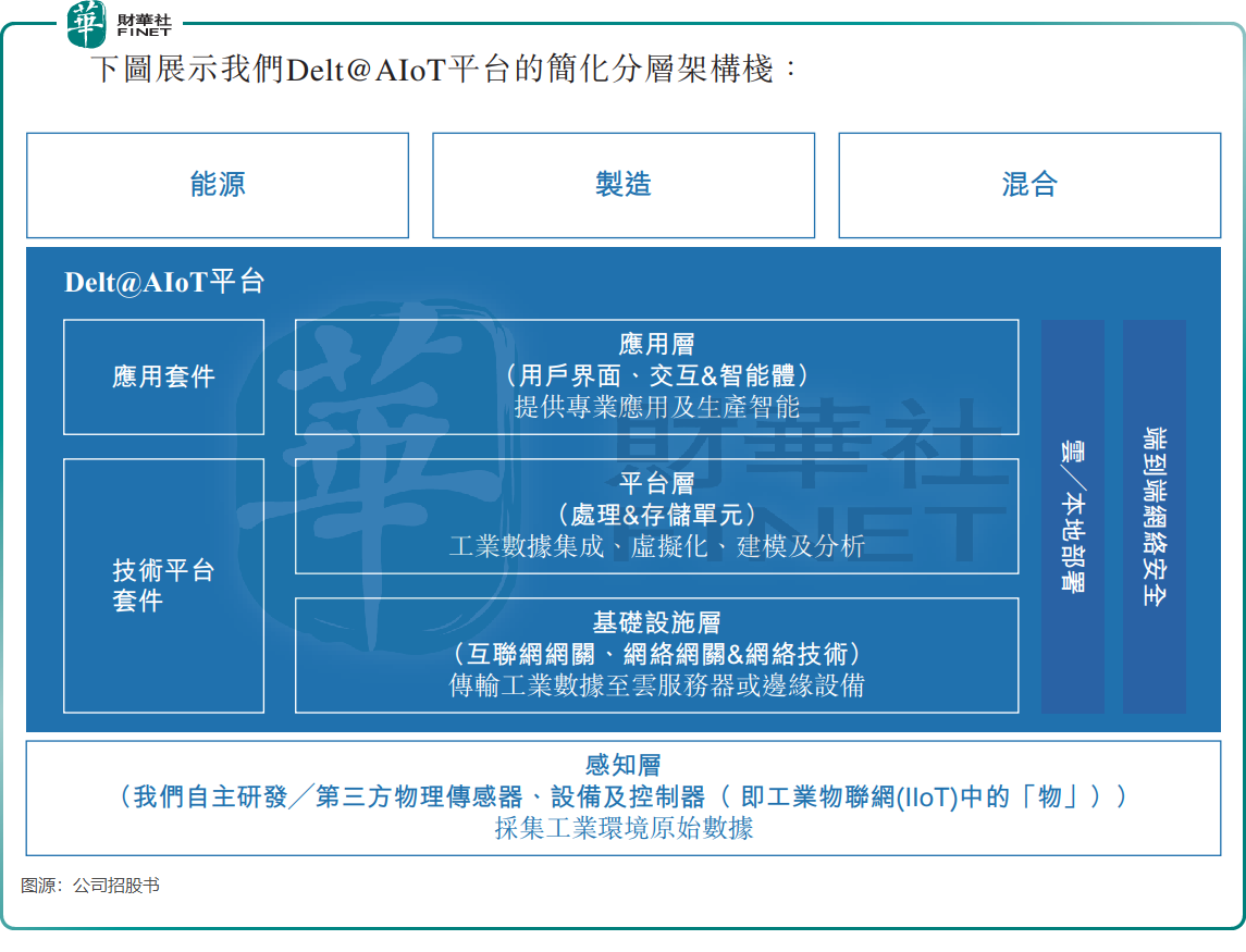 德風新徵程是一家AI賦能工業物聯網生產優化軟件解決方案技術開發商,其業務圍繞自主研發的Delt@AIoT平台展開,形成「解決方案+服務+產品」的三層業務結構,聚焦能源、製造、混合行業(運輸、政府公共服務等)的數字化需求。