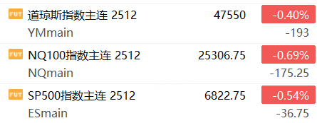 12月1日,美股三大股指期貨下跌,截止發稿,道指期貨跌0.40%,納指期貨跌0.69%,標普500指數期貨跌0.54%。