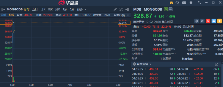 華盛資訊12月2日訊,AI應用軟件股MongoDB盤前大漲超22%,公司2026財年Q3營收6.28億美元,同比增長19%。