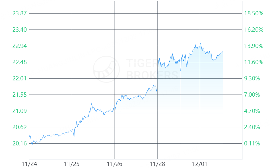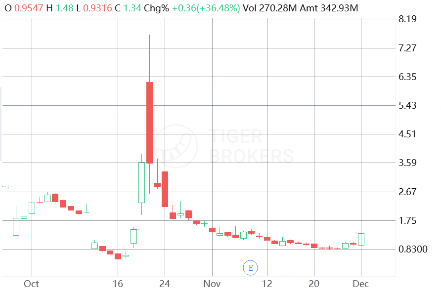 值得一提的是, 遊戲驛站 作爲MEME股的龍頭,上週股價上漲近12%,週一繼續漲1.15%,MEME股炒作有回暖態勢(該公司將於12月9日美股盤後發佈財報)。
