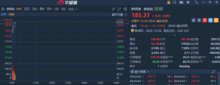 華盛資訊12月2日訊,明星科技股盤初走強,英偉達漲超3%,英特爾漲超2%,谷歌漲超1%。