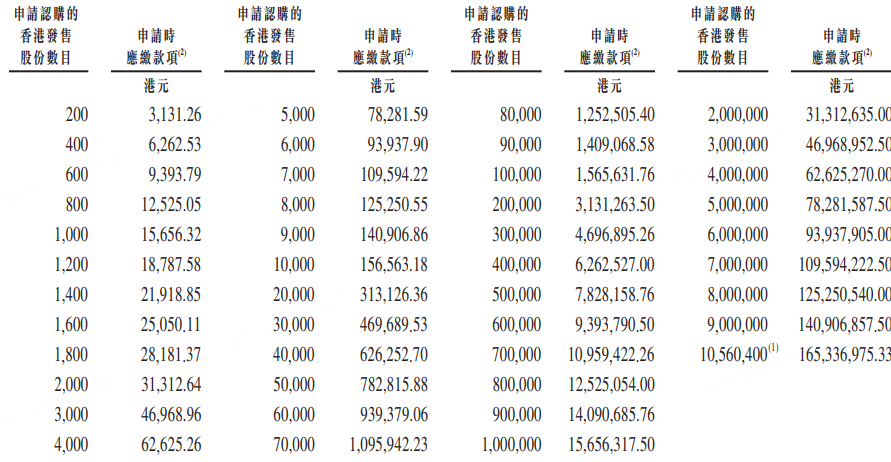 乙組門檻爲40萬股,申購所需資金約626.25萬港元。
