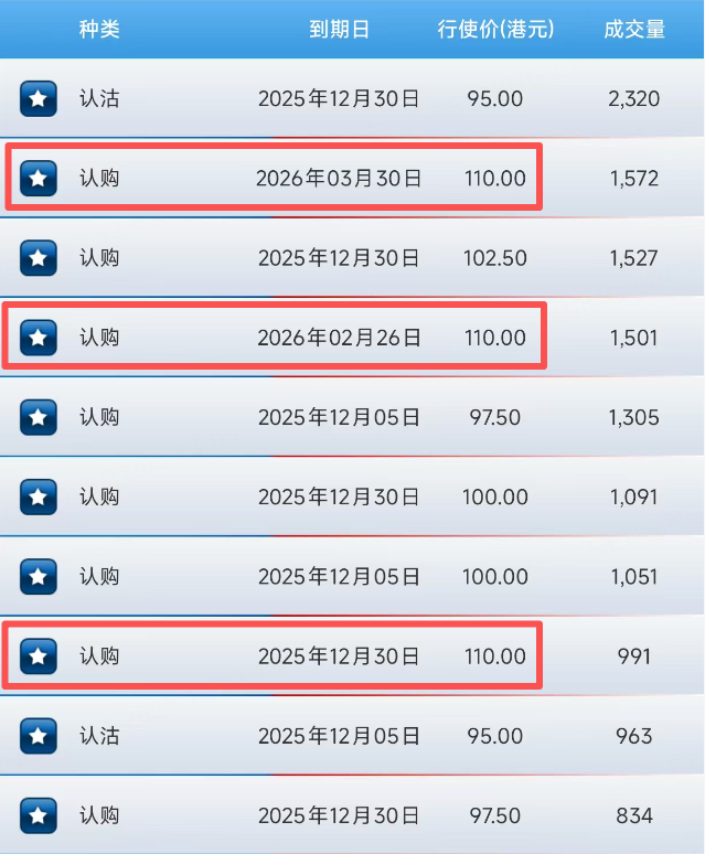 美團-W 上午續跌0.67%。財報後三天累計跌幅超6%,市場擔憂“外賣大戰”對美團盈利能力會有持續的負面影響。不過,美團的認購合約成交依然積極,排名前十的合約中,有三張CALL的行權價達110港元,較現價有約15%的漲幅空間。