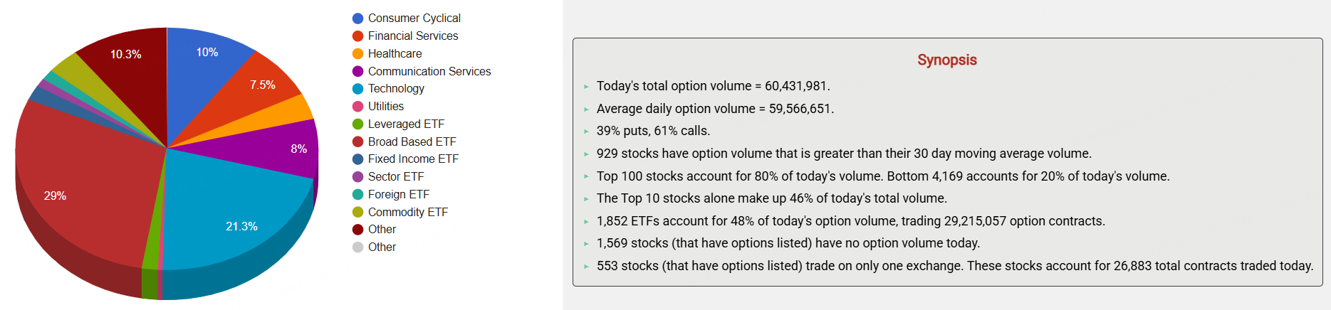 期權市場總成交量60,431,981張合約,其中看漲期權佔比61%。