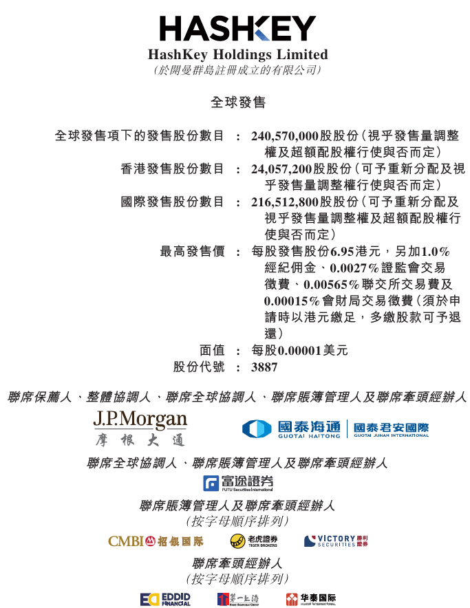 華盛資訊12月9日訊,HASHKEY HLDGS(03887)開啓申購,其將於2025年12月17日正式開始在聯交所買賣。