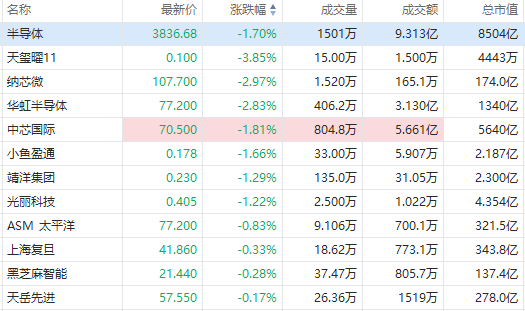 華盛資訊12月9日訊,芯片股承壓走低,華虹半導跌近3%,中芯國際跌近2%,上海復旦跌約0.5%。