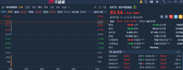 華盛資訊12月10日訊,回聲星通信盤前大漲近6%;消息面上,SpaceX據稱尋求明年上市,帶動太空公司股價齊漲。