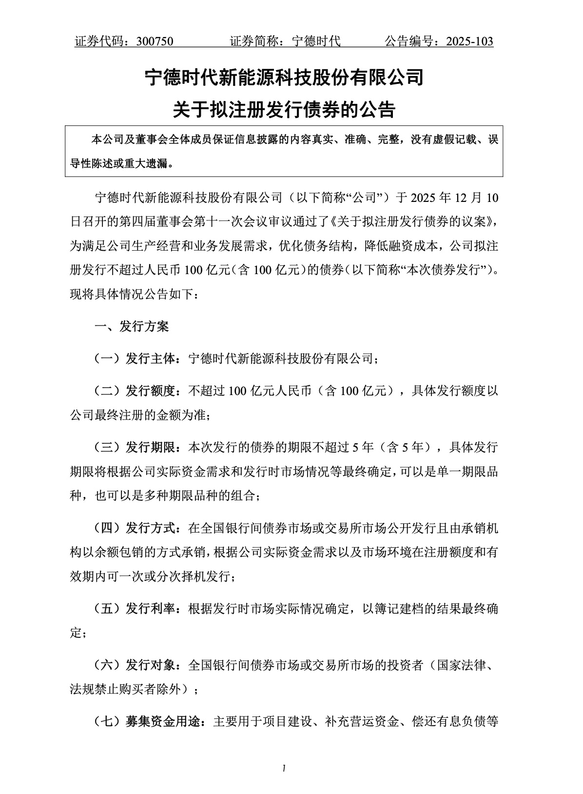 寧德時代公告稱,公司擬註冊發行不超過100億元的債券,用於項目建設、補充營運資金、償還有息負債等。債券期限不超過5年,發行方式爲公開發行且由承銷機構以餘額包銷的方式承銷。此外,公司董事會提請股東會授權總經理或其授權人士全權辦理與本次債券發行工作的相關事宜。