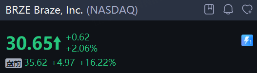 客戶互動平臺提供商Braze漲超16%,第三季度收入爲1.91億美元,超過分析師預估的1.84億美元,同比增長25.5%。公司現預計全年收入爲7.305-7.315億美元,高於此前市場共識的7.18億美元。公司還將調整後每股收益預期上調至0.42-0.43美元,相比分析師預期的0.42美元。