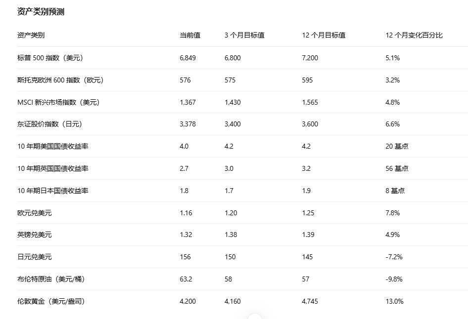 【券商聚焦】高盛對全球部分主要資產類別預測表