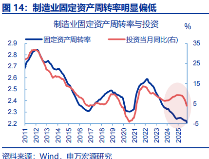 11月經濟增長壓力或仍聚焦於製造業領域,主要表現爲企業加快清繳欠款,對投資產生額外拖累。近兩年部分企業以欠款形式增加投資,本輪化債除聚焦地方政府外,也要求企業加快清繳欠款;由於當前企業盈利偏弱,企業或將投資的資金用於清繳欠款,導致固定投資回落。2025年6月來應收賬款增速明顯回落,與固定資產投資回落的時點基本一致,也與2019年清繳中小企業欠款時類似。10月應收賬款增速進一步降至5.1%,短期來看清繳欠款或仍對製造業投資產生拖累。此外,去年來製造業投資表現強勁並非源於政策驅動,更多是設備處於自然更新的上行週期;但下半年來,自然週期進入退坡階段;製造業投資較固定資產增速的差值在達階段性頂點後持續回落。