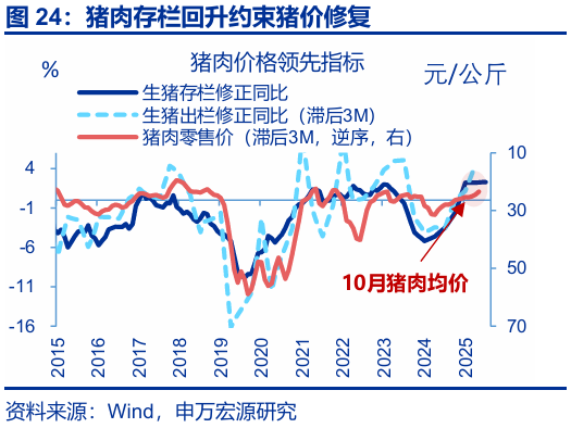 基數走低下,鮮菜、黃金等大宗漲價提振CPI,CPI同比明顯回升。前期生豬存欄持續增加對豬價的約束仍在顯現,11月以來豬肉價格環比-1.4%;但鮮菜(10%)價格環比強於去年同期,鮮果(1.3%)與往年相近,整體來看食品CPI同比或有修復。核心CPI方面,國補商品或轉爲商補拖累CPI讀數,但金價、服務CPI回升,疊加翹尾因素走低,11月CPI同比回升至0.7%。