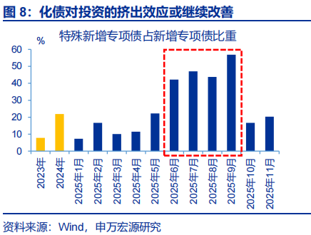 內需的亮點可能體現在投資以及服務消費兩個方面,一是化債對投資的擠出效應或有緩解,二是秋假或支撐服務消費維持高位。投資方面,前期兩類增量資金落地下,化債對投資的擠佔或有改善,10-11月特殊再融資專項債佔比降至20%以下;10月建安投資也未進一步回落(同比-16%左右)。前期化債提速對投資資金形成擠佔,導致投資用的相關工業品已到位、但尚未形成投資,因而相關高頻指標短期對投資的指引意義弱化。上述或也意味着雖然11月投資高頻指標表現一般,但投資可能並不差。消費方面,電商促銷前置效應消散,“以舊換新”商品退坡壓力下,社零或表現偏弱(預計2.7%)。但各地秋假推進,人流出行維持高位,或令服務消費需求持續釋放。