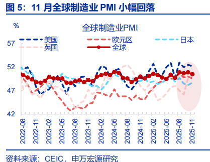 11月以來,煤、銅等上游大宗延續漲價,對PPI支撐或在延續。大宗價格方面,投資需求偏弱下,鋼價持續回落(環比-0.7%);同時國際油價領先我國PPI半個月,10月中旬-11月中旬油價環比-0.7%。但銅價、煤價延續上漲(環比分別0.2%、8.8%),預計大宗價格對PPI貢獻仍持續。相比之下,反內卷效果落地滯後下,中下游價格修復斜率偏慢,預計11月PPI同比小幅回落至-2.2%。