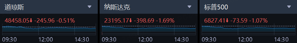 美東時間週五,華爾街主要股指集體收低,隨着博通和甲骨文相繼引發市場對AI泡沫的擔憂,再加上一些美聯儲官員反對放鬆貨幣政策,推動美債收益率走高,投資者紛紛從科技板塊撤離。截至收盤,道指跌245.96點,跌幅爲0.51%,報48458.05點;納指跌398.69點,跌幅爲1.69%,報23195.17點;標普500指數跌73.59點,跌幅爲1.07%,報6827.41點。