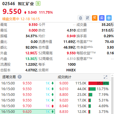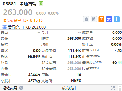 華盛資訊12月18日訊,港股智匯礦業、希迪智駕正在暗盤交易中。