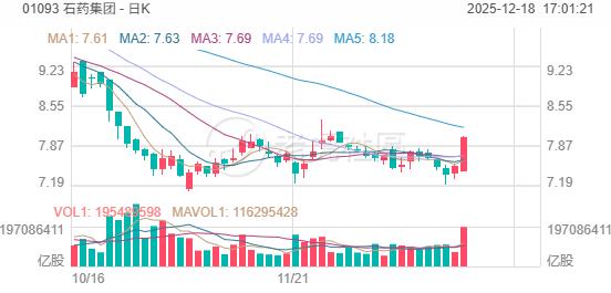 醫藥股表現活躍。 石藥集團 漲6.52%, 康寧傑瑞製藥-B 漲4.3%, 再鼎醫藥 漲2.45%, 藥明康德 漲0.99%。