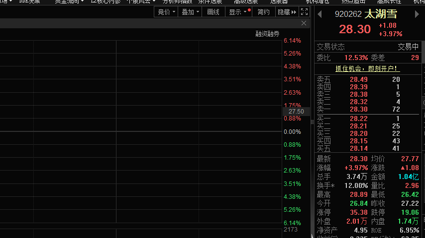 12月19日,太湖雪(920262)股價上漲。截至發稿,股價漲近4%,近一週股價漲幅超18%。