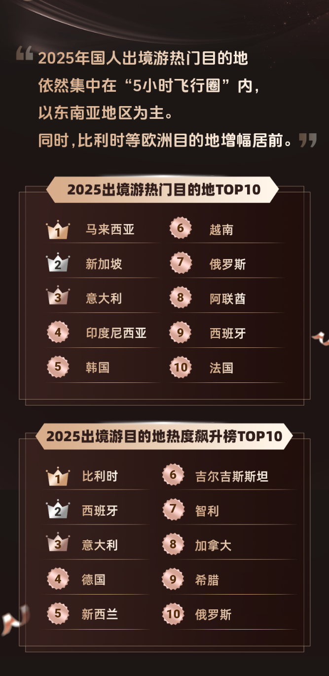 馬來西亞位居2025出境遊熱門目的地榜首,熱度飆升榜比利時等歐洲目的地居前
