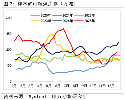 今日雙焦主力合約走勢較強,焦煤主力合約收於1126.5元/噸、漲幅超6%,焦炭主力合約收於1743元/噸、漲幅超4%。 供應方面:本週樣本礦山精煤與原煤產量爲75.75萬噸與192.7萬噸,兩者環比微幅增加,礦山精煤開工率環比小幅增加1.31%至86.62%,樣本洗煤廠精煤日均產量爲27.29萬噸、環比微幅下降0.63萬噸,當前蒙煤通關量在處於同期最高水平。上週獨立焦化廠焦炭日均產量爲63.98萬噸、產能利用率爲73.16%,兩者環比小幅下降,樣本鋼廠焦炭日均產量與產能利用率分別爲46.61萬噸與85.95%,兩者環比基本持平。 需求方面:上週樣本鋼廠鐵水日均產量環比下降3.1萬噸至229.2萬噸,高爐產能利用率環比小幅下降,樣本鋼廠盈利率爲35.93%、環比再度下降。 庫存方面:本週樣本礦山精煤庫存爲272.77萬噸、環比小幅增加17.46萬噸。上週獨立焦化廠煉焦煤庫存以及庫存可用天數分別爲1037.3萬噸與12.19天,兩者環比小幅增加,樣本鋼廠煉焦煤庫存以及庫存可用天數分別爲794.65萬噸與12.82天,兩者環比基本持平。 現貨、基差與利潤:截至12月18日,蒙5主焦煤現貨1320元/噸、周環比下降,其倉單對應05基差約爲16元/噸、基差周環比明顯下降,準一級焦港口現貨價爲1430元/噸、周環比小幅下降,其倉單對應05基差爲-52元/噸、周環比明顯下降,上週焦化廠噸焦利潤環比增加至44元/噸。從基本面數據來看,樣本礦山的焦煤供應環比基本持平,蒙煤單日通關量仍處同期最高水平,整體供應偏寬鬆;上週鐵水產量降至230萬噸以下的水平,但樣本鋼廠盈利率降幅放緩,疊加本週鋼材現貨價格環比回升,預計鋼廠盈利率將小幅改善;由於鐵水產量下滑、雙焦剛需走弱,且下游焦煤庫存環比變化不大、剛需補庫尚未開啓,導致上游礦山精煤庫存持續上行。整體來看,當前雙焦基本面數據改善力度有限,但是春節前的下游剛需補庫將爲焦煤提供季節性需求增量,採暖旺季的電廠日均耗煤季節性增加,亦能爲碳元素價格提供支撐,疊加“反內卷”政策的進一步深化與落實能從供給端發力,旨在治理行業內的無序競爭與過度投資,客觀上將通過控制整體產量增速、優化行業競爭生態的方式,對煤炭供給形成結構性約束,因此碳元素需求的季節性擴張與供給優化預期能爲盤面打開上行空間。