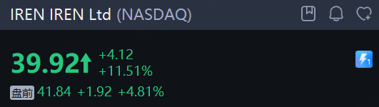加密貨幣概念股盤前普漲。IREN漲近5%,BMNR漲近4%,Robinhood漲超2%,Strategy、Coinbase漲近2%。