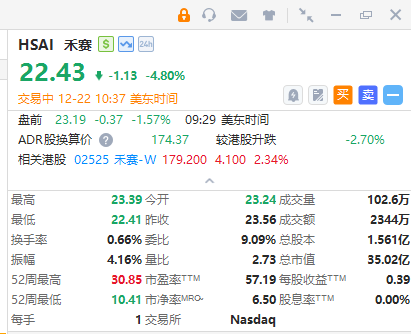 華盛資訊12月22日訊,熱門中概股走勢分化,截至發稿,拼多多、攜程網、奇富科技漲超2%,臺積電、蔚來、京東漲約1%;禾賽大跌近5%,金山雲跌近1%,百度、騰訊音樂跌約0.5%。