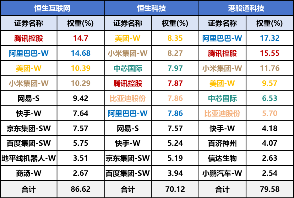 上述ETF跟蹤指數不同,對港股科技AI巨頭的權重分佈也略有差異,其中港股通科技ETF基金(159101.SZ)單一個股權重上限更高,阿里巴巴+騰訊控股+小米集團+美團-W+中芯國際+比亞迪股份的合計佔比近70%。