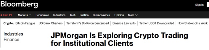 #NFT與加密貨幣#FX168財經報社(亞太)訊 美國彭博社週一(12月22日)報道稱,摩根大通公司(JPMorgan Chase & Co.)正考慮向其機構客戶提供加密貨幣交易服務,因爲全球大型銀行正不斷加深對這一資產類別的參與。