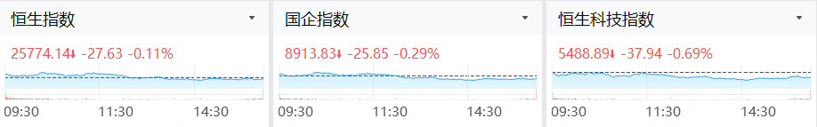 港股午後明顯回落,三大指數均收跌,截至收盤, 恒生指數跌0.11%,恒生科技指數跌0.69%,國企指數跌0.29%。