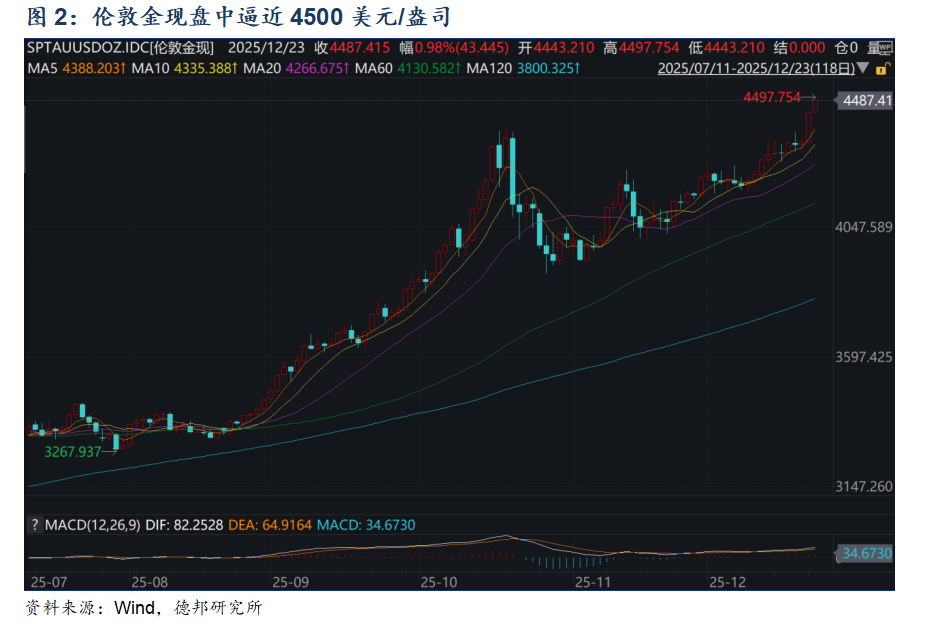 貴金屬再度大漲,倫敦金逼近4500美元/盎司。今日貴金屬板塊再度大漲,倫敦金現盤中逼近4500美元/盎司,或顯示市場配置需求加速提升。消息方面,美聯儲理事米蘭警告稱,如果美聯儲明年不繼續降息,美國經濟將面臨日益嚴重的衰退風險。他認爲失業率可能已升至超出預期的水平,這些數據應促使美聯儲決策者轉向鴿派。這也進一步強化市場對於美聯儲明年降息預期提升空間。鈀、鉑作爲金融屬性與工業屬性兼備的品種,在金價上漲時持續展現高彈性。值得注意的是,鈀、鉑上市以來已實現大幅上漲,後續波動或將加大。