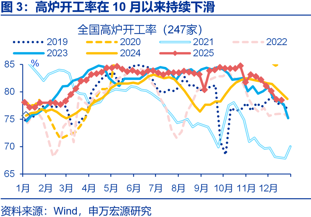 近期工業生產、基建投資等有所回落下,跨區人流持續高位;部分觀點認爲“返鄉潮”已提前到來。不同於往年國慶節後人流出行大幅回落,今年人流出行在國慶節後持續高位,全國遷徙規模指數同比維持在15.3%左右的較高水平。部分觀點認爲當前人流出行走強可能源於近期工業生產、傳統基建投資弱勢表現,直接導致用工需求減少,使大量務工人員提前返鄉;數據上高爐開工率自10月下旬來回落5.6個百分點,招工信息的互聯網搜索指數也在10月下旬後回落明顯、目前已低於前兩年同期水平。