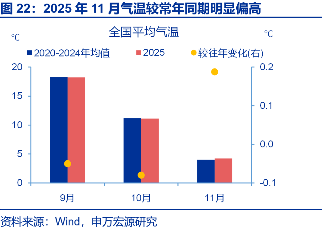 同時今年冬季氣溫較往年偏暖,可能延長居民出行窗口期,支撐全國出行維持高位。11月,全國平均氣溫4.2℃,超過過去五年同期0.2℃;12月以來,多地氣溫延續偏高態勢,部分地區的最高溫超過常年同期10℃左右。暖冬天氣顯著降低低溫、雨雪、冰凍等不利天氣對出行的約束,延長居民跨區域出行窗口期。數據上11月氣溫較往年越高的地區,人流活躍度更高;譬如11月天津、石家莊平均氣溫分別高於往年同期1.3℃、1.8℃,對應遷徙規模指數也超過往年25.6%、22.2%。