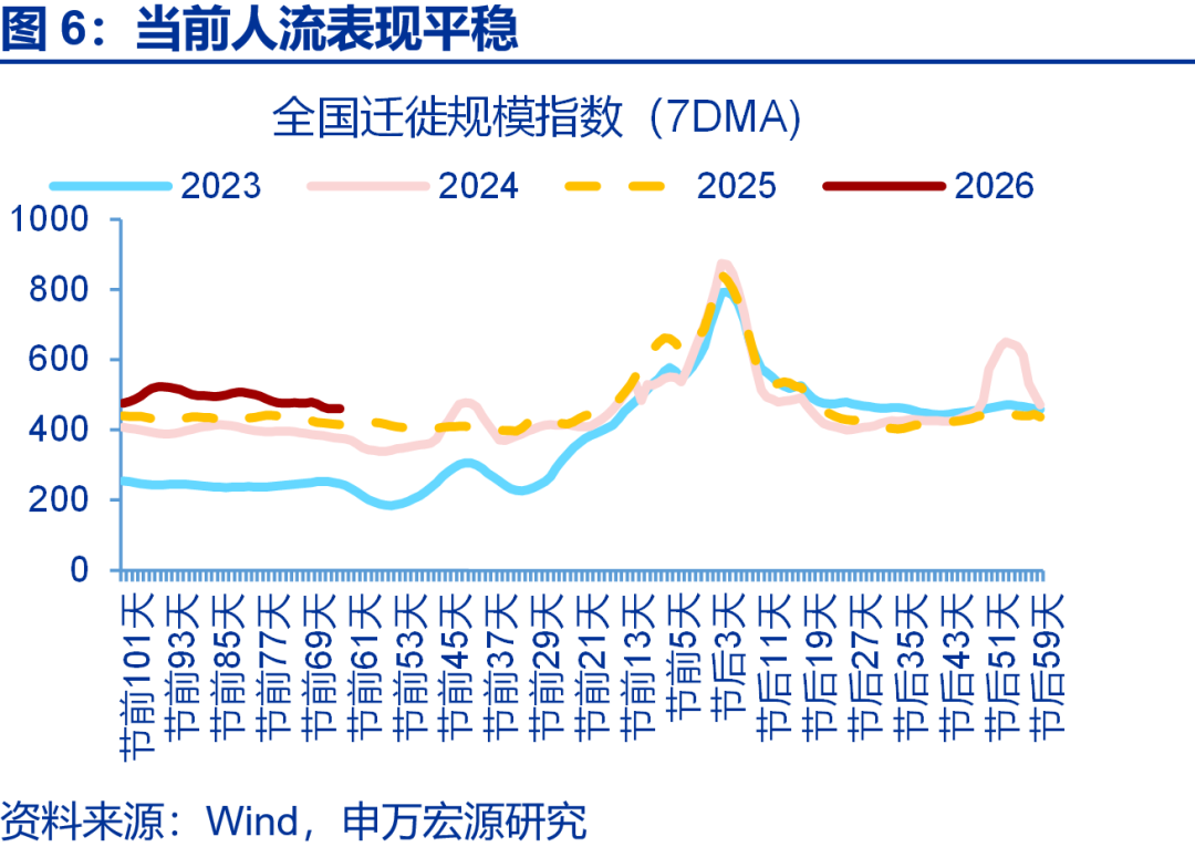 一問:近期人流高位,是“返鄉潮”嗎?當前人流出行平穩高位,與返鄉潮的脈衝上漲特徵不同。