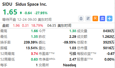 太空概念股 Sidus Space Inc. 盤前暴漲超18%。公司本週宣佈,已確定以每股1.30美元的價格發行約1920萬股股票,預計募集資金總額約爲2500萬美元。計劃將此次發行所得淨收益用於銷售和市場營銷、運營成本、產品開發、生產擴張以及其他一般公司用途。
