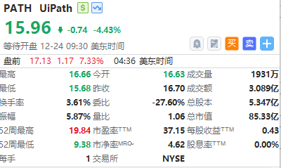 自動化企業UiPath盤前漲超7%。消息面上,UiPath獲納入標普中型股400指數成分股。