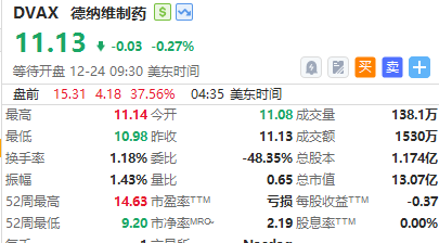 德納維製藥盤前暴漲超37%。賽諾菲斥資22億美元收購德納維製藥,拓展疫苗業務版圖。