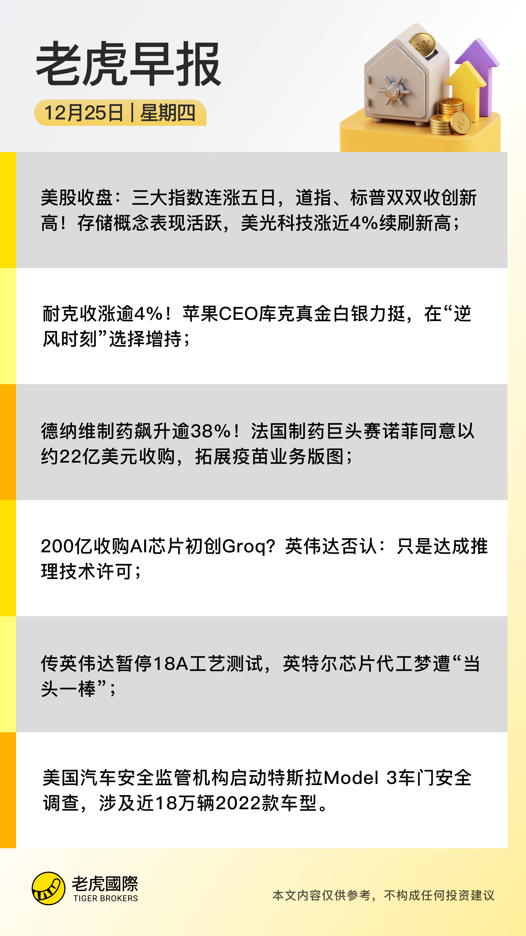 交易提醒:因聖誕假期,美股、港股、澳股及新加坡股市均全天休市。