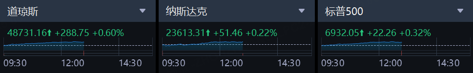 週三(12月24日),美股低開高走,三大指數連漲五日,其中道指和標普收於新高。由於逢聖誕夜,美股週三提前3小時收盤,週四聖誕節全天休市。截至收盤,道瓊斯指數漲0.6%,報48731.16點,刷新了12月11日錄得的收盤紀錄;標普500指數漲0.32%,報6932.05點,連續第二日收新高,另還創下了6937.32點的盤中紀錄;納斯達克綜合指數漲0.22%,報23613.31點。
