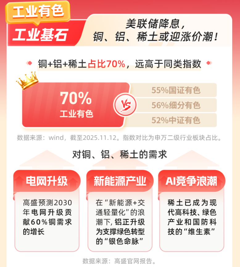 有色金屬行業細分領域複雜、價格波動較大,因此指數化投資成爲捕捉行業趨勢的高效工具。天弘中證工業有色金屬主題指數型基金(A:017192;C:017193)緊密跟蹤中證工業有色金屬主題指數,一鍵佈局銅、鋁、稀土、鋰等30家工業金屬龍頭企業,行業結構均衡,覆蓋工業金屬、小金屬、能源金屬等核心賽道。
