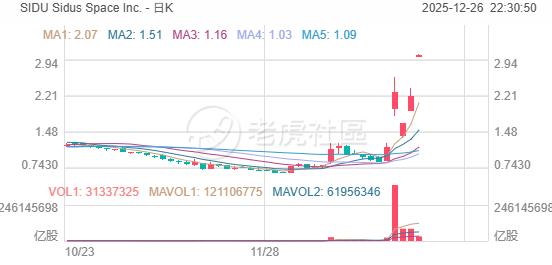 太空概念龍頭股 Sidus Space Inc. 暴漲近40%,12月漲幅已接近215%。