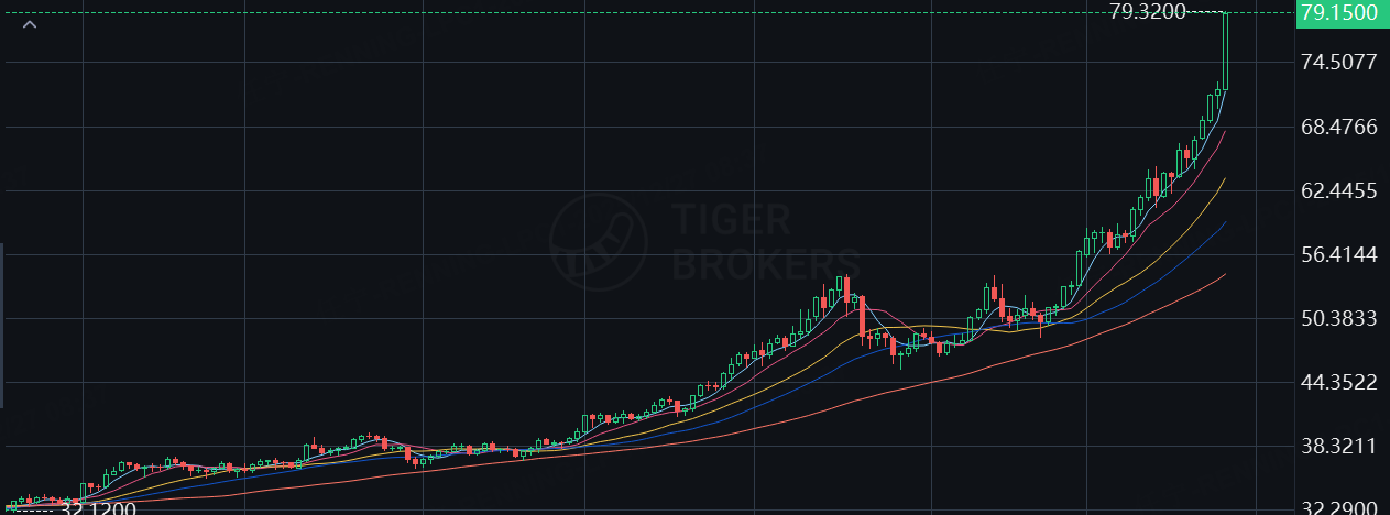 現貨黃金一度上漲1.6%,站上每盎司4,540美元上方;現貨白銀連續第五個交易日走高,大漲超10%,突破每盎司79美元關口。鉑金同樣表現搶眼,價格首次突破每盎司2,400美元,爲自1987年有統計數據以來的新高。