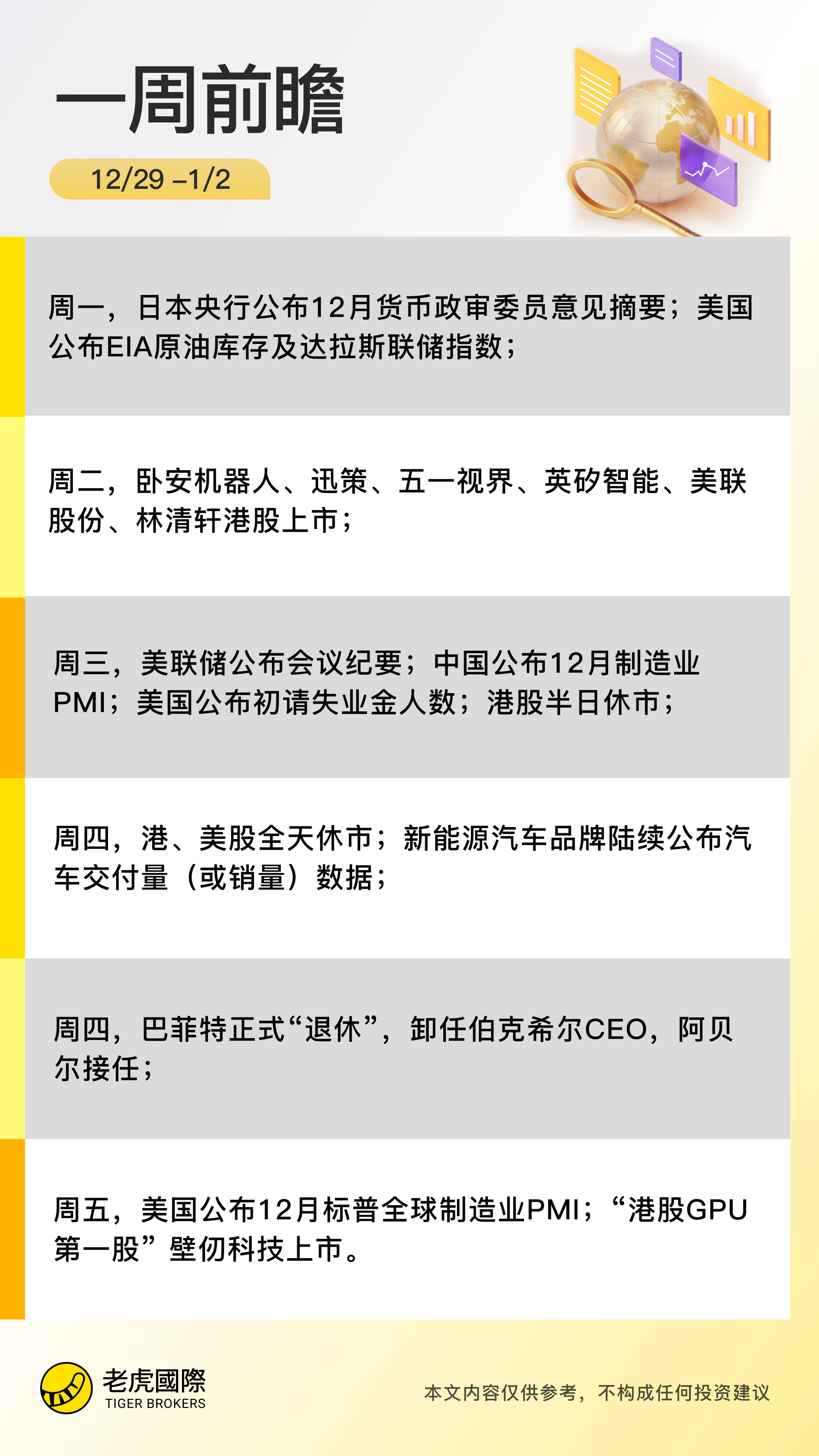 1月2日週五,美國12月標普全球製造業PMI數據將公佈。此外,12月29日週一公佈美國11月成屋簽約銷售指數數據,31日週三公佈美國12月27日當週首次申請失業救濟人數。