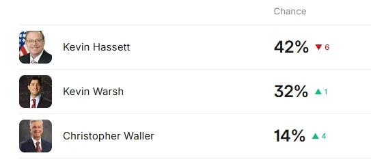 與此同時,投資者也在等待美國總統特朗普是否會在本週提名下一任美聯儲主席人選,以接替將於明年5月任期屆滿的鮑威爾,特朗普的任何提名意向信號,都可能在未來一週對市場造成影響。目前,三位“決賽圈”選手分別是白宮國家經濟委員會主任凱文·哈西特、美聯儲前理事凱文·沃什,以及特朗普第一任期時提名的美聯儲理事克里斯托弗·沃勒。