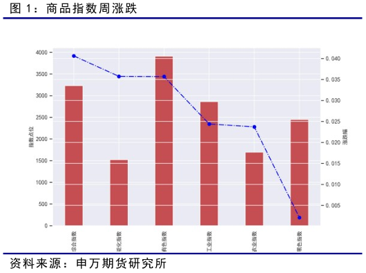 國家發改委產業發展司發佈文章《大力推動傳統產業優化提升》。文章指出,對新能源汽車、鋰電池、光伏等“新三樣”產業,關鍵在於規範秩序、創新引領。“新三樣”產業是我國在激烈市場競爭下培育出的優勢產業,是我國外貿高質量發展的新引擎,在全球綠色產業變革中彰顯了中國力量,但也面臨市場競爭失序、核心優勢還不牢固等問題挑戰。“十五五”時期,要綜合整治“內卷式”競爭,維護公平競爭環境,提高行業集中度,打造全球技術領先高地。規範市場競爭秩序,深入實施公平競爭審查制度,加強價格監測、質量檢查,防止低價無序競爭。加強供應鏈治理,保障中小企業款項支付,營造行業互利共贏良好生態。加大技術創新力度,鞏固技術領先優勢。加強宏觀調控,堅持用市場化、法治化手段推動落後低效產能退出。強化行業自律,發揮行業協會作用,引導企業培育差異化競爭優勢,弘揚企業家精神。截至本週,綜合指數點位爲3231.13,周漲跌幅爲4.06%。分類指數方面,工業指數點位爲2861.33,周漲跌幅爲2.44%;農業指數點位爲1692.70,周漲跌幅爲2.37%;有色指數點位爲3908.14,周漲跌幅爲3.57%;能化指數點位爲1521.57,周漲跌幅爲3.57%;黑色指數點位爲2448.81,周漲跌幅爲0.21%。2、重點策略: