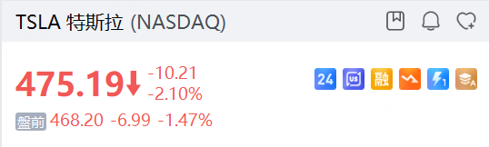 週一盤前交易中,特斯拉(TSLA)股價下跌 1.47%,報 468.2 美元。