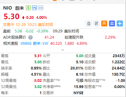 華盛資訊12月29日訊,熱門中概股走勢分化,蔚來大漲4%,公司宣告全新ES8交付破四萬輛;